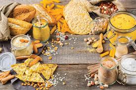 Assortimento di prodotti per diete speciali, intolleranze e prodotti senza glutine.